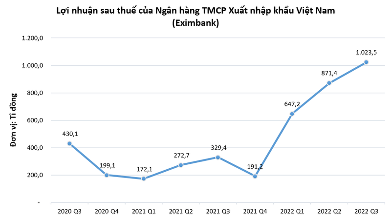 Trừ đi các loại chi phí và thuế, EIB báo lãi ròng quý 3/2022 ở mức 1.023,5 tỉ đồng, gấp 3,1 lần so với cùng kỳ năm trước. Lũy kế 9 tháng đầu năm 2022, lợi nhuận sau thuế của EIB đạt 2.542,1 tỉ đồng, gấp 3,2 lần so với cùng kỳ năm 2021.