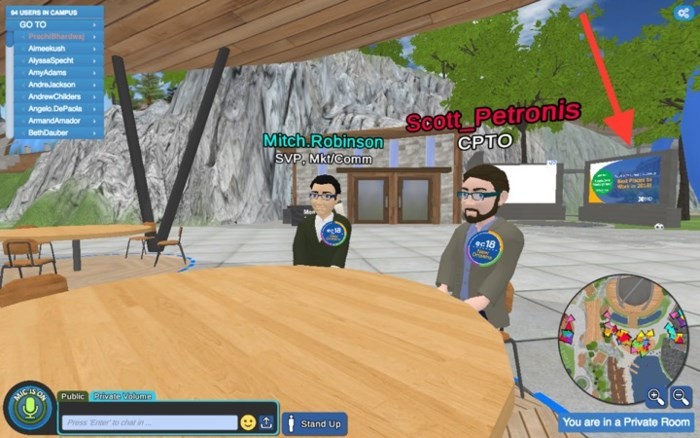 Khi đã sẵn sàng, bạn sẽ được đưa ra ngoài để tìm đến 2 "hướng dẫn viên": CTO (Giám đốc công nghệ) Scott Petronis và Phó Chủ tịch Marketing Mitch Robinson