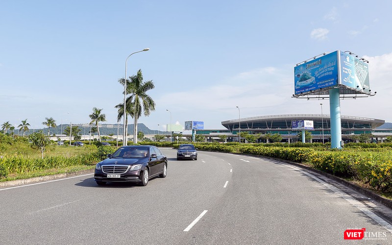 Đoàn xe Mercedes-Benz S-Class và S Maybach dừng đỗ trước sảnh khu vực sân VinPearl Golf Phú Quốc Resort.