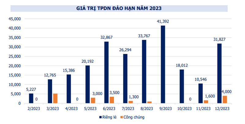 Theo đó, các đợt phát hành được công bố trong tháng 1/2013 hầu hết đều được thực hiện vào tháng 12/2022. Trong đó, nhóm ngân hàng chiếm đa số với 3.269,5 tỉ đồng phát hành trái phiếu riêng lẻ và 10.637,8 tỉ đồng phát hành ra công chúng.