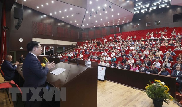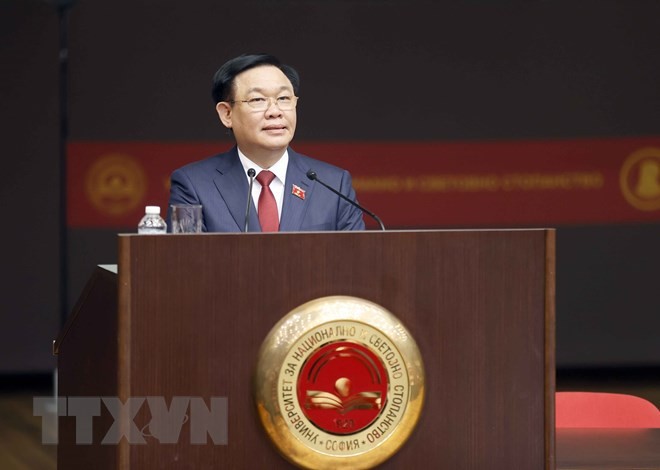 Theo đặc phái viên TTXVN, chiều 25/9, trong khuôn khổ chuyến thăm chính thức Bulgaria, tại thủ đô Sofia, Chủ tịch Quốc hội Vương Đình Huệ đã tới thăm và có bài phát biểu chính sách quan trọng trước các học giả, giáo sư, giảng viên và đông đảo sinh viên tại Đại học Kinh tế Quốc tế và Quốc gia Sofia.