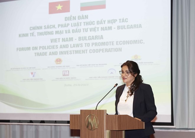 Phó Chủ tịch Quốc hội Bulgaria Rositsa Lyubenova Kirova phát biểu khai mạc. (Ảnh: Doãn Tấn/TTXVN)