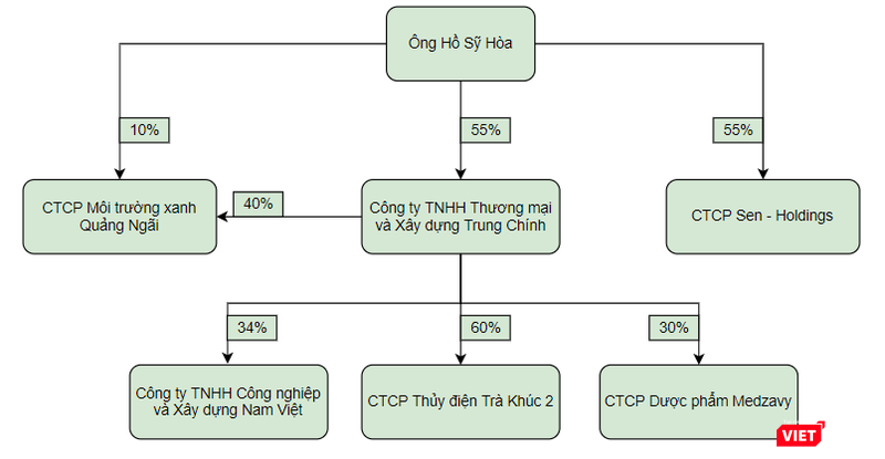 Trong khi đó, Chủ tịch HĐTV Hồ Sỹ Hòa, Tổng giám đốc Trần Quang Việt và ông Hồ Văn Hương còn là cổ đông sáng lập, lần lượt nắm giữ 55%, 30% và 15% cổ phần của CTCP Sen - Holdings. Pháp nhân này được thành lập vào tháng 12/2020 với vốn điều lệ 120 tỉ đồng, trụ sở chính đặt tại Khu đô thị mới Lê Trọng Tấn - Geleximco, xã An Khánh, huyện Hoài Đức, TP. Hà Nội, đăng ký ngành nghề kinh doanh chính trong lĩnh vực bất động sản.