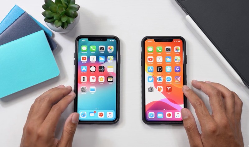 Theo như video, phía bên phải là chiếc iPhone XS Max đang chạy iOS 13 beta , còn phía bên trái là chiếc XS Max đang vận hành trên phiên bản iOS 12.4. Trong lần mở ứng dụng Geekbench, tốc độ mở ứng dụng cả 2 là ngang nhau. Điểm số đo đạc được cũng không thật sự khác biệt nhiều, đơn nhân cho iOS 12.4 là 4793, đa nhân là 11245, trong khi đó, phiên bản iOS 12.3 beta với đơn nhân là 4825 và đa nhân 11005. Về các thao tác sử dụng cơ bản, iOS 13 vẫn đảm bảo được thao tác mượt mà và trơn tru tương tự iOS 12.4. Nhưng sự khác biệt là không lớn. Khi khởi động lại, iOS 12.4 cho tốc độ nhanh hơn khoảng 3 giây.
