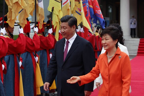 Chủ tịch Trung Quốc Tập Cận Bình sang thăm Hàn Quốc năm 2014. Ảnh: AP