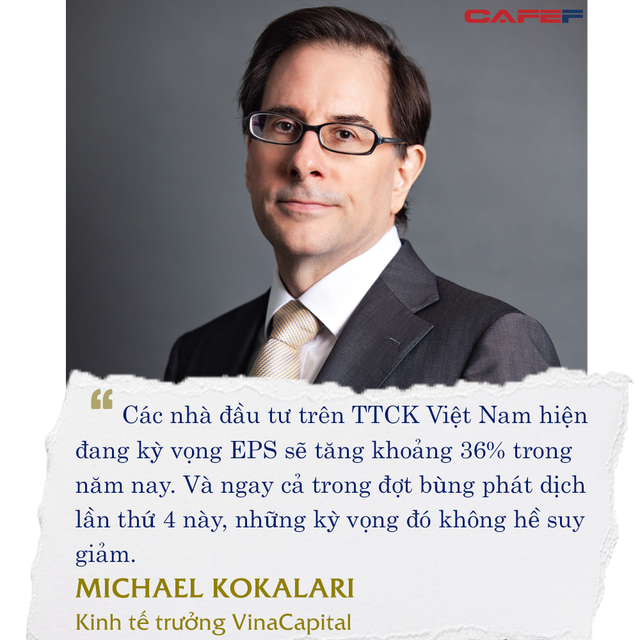 Các nhà đầu tư trên thị trường chứng khoán Việt Nam hiện đang kỳ vọng lợi nhuận trên mỗi cổ phiếu (EPS) sẽ tăng khoảng 36% trong năm nay. Tôi cũng nhận thấy rằng những kỳ vọng đó không hề suy giảm ngay cả trong đợt bùng phát đại dịch thứ 4 này. Dự báo, thị trường chứng khoán Việt Nam sẽ tăng ít nhất 30% trong năm 2021, nếu tăng trưởng lợi nhuận của các công ty niêm yết đạt mức kỳ vọng.