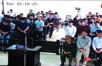 | Phan Sào Nam (áo sơ-mi trắng) tại phiên tòa xét xử sơ thẩm |