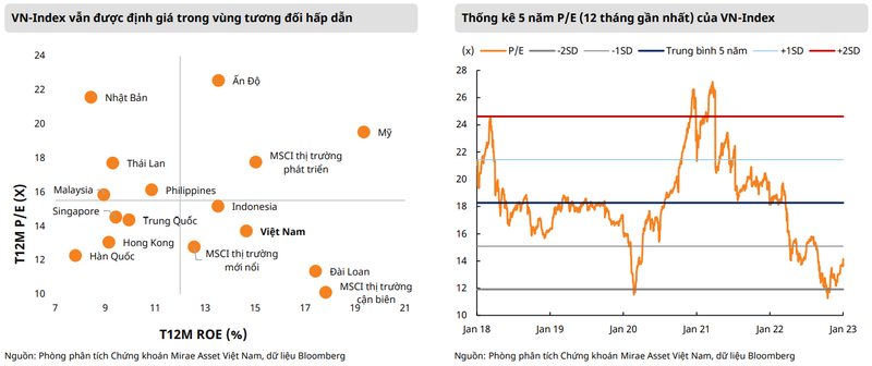 Dù vậy, Mirae Asset đánh giá thị trường chứng khoán Việt Nam vẫn tương đối hấp dẫn xét về triển vọng tăng trưởng kinh tế và thu nhập doanh nghiệp (cả hai đều được dự báo vượt trội so với các thị trường khác, theo Bloomberg consensus).