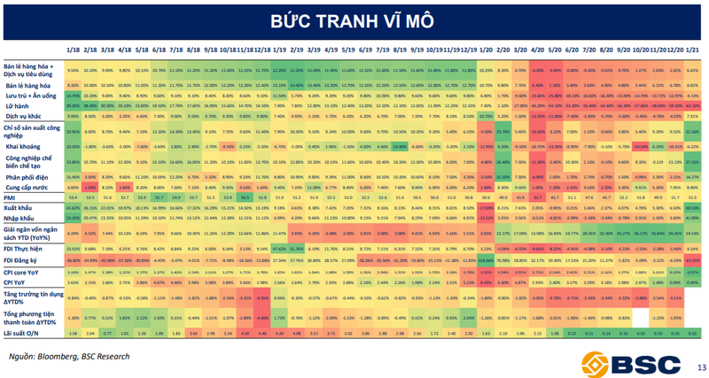 Trong báo cáo vĩ mô thị trường tháng 1, Công ty Cổ phần Chứng khoán Ngân hàng Đầu tư và Phát triển Việt Nam (BSC) đánh giá việc dịch bệnh Covid-19 bùng phát một lần nữa ảnh hưởng tiêu cực tới triển vọng hồi phục trong năm 2021 của kinh tế Việt Nam.