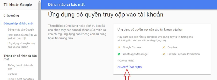 Google chia làm ba mục: Các ứng dụng bên thứ ba có quyền truy cập vào tài khoản (1); Đăng nhập bằng Google (2) và Ứng dụng Google (3). Ứng dụng thuộc mục (2) biết tên, địa chỉ email, ảnh đại diện, trong vài trường hợp còn truy cập được nhiều thông tin hơn. Bạn cấp quyền Đăng nhập bằng Google để đăng nhập vào tài khoản mà không phải lập ra tài khoản mới, tuy nhiên một số công ty sử dụng ứng dụng Google tại cơ quan còn yêu cầu nhân viên phải dùng tài khoản Google để đăng nhập dịch vụ, ứng dụng khác.
