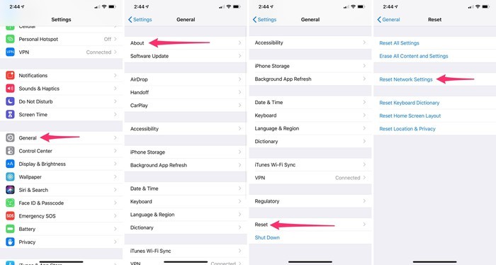 Đặt lại cài đặt mạng sẽ khôi phục tất cả mật khẩu kết nối của iPhone.