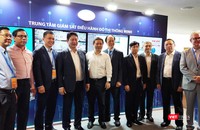 Ông Nguyễn Minh Hồng - Chủ tịch Hội Truyền thông số Việt Nam và các lãnh đạo trong một lần tham quan Trung tâm Điều hành giám sát đô thị thông minh (Ảnh: Hòa Bình) |