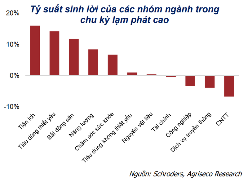 Đối với TTCK Việt Nam, theo thống kê của Agriseco Research, chỉ số VN-Index ghi nhận mức sinh lời 1,8%/tháng khi lạm phát dưới 5%.