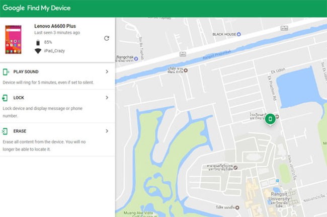 Sử dụng tính năng này dễ dàng như tìm kiếm “Điện thoại của tôi ở đâu” trong Google, điều này sẽ nhắc dịch vụ bắt đầu tìm kiếm smartphone của bạn. Bạn có thể thiết lập mật khẩu mới và làm cho điện thoại của bạn đổ chuông từ xa, cùng với nhiều chức năng khác mà nó sử dụng cho mục đích thông báo. Mặc dù bạn có thể định cấu hình Tìm thiết bị trước, dịch vụ sẽ khả dụng trong trường hợp bạn mất. Nó sẽ sử dụng Wi-Fi hoặc GPS để giúp bạn tìm kiếm thiết bị của mình.