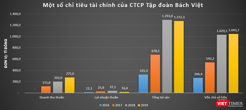 Cụ thể, tại thời điểm 31/12/2019, tổng tài sản và vốn chủ sở hữu của BV Group lần lượt đạt mức 1.272,3 và 1.043,7 tỉ đồng, tăng gấp 3,9 lần so với cuối năm 2016.