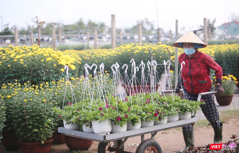 Những ngày này, tại đây luôn tấp nập thương lái đến mua, chuyển hoa ra thị trường phục vụ người dân chơi Tết, tạo nên một bức tranh xuân sống động.