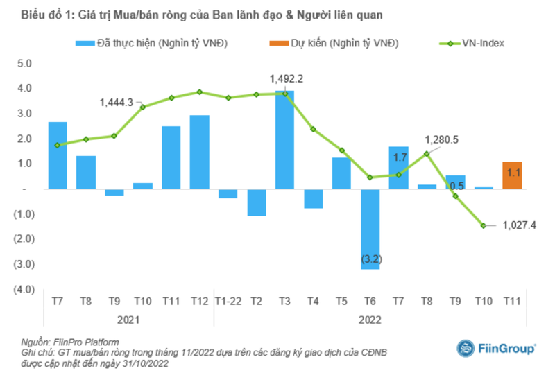 Như vậy, tổng giá trị mua ròng từ cổ đông nội bộ dự kiến trong tháng 11/2022 là 2.300 tỉ đồng.