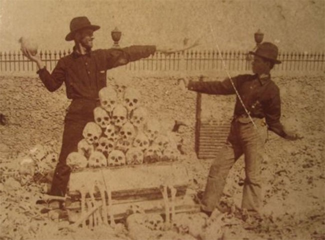 12. Sân xương này là tập hợp của những bộ xương đào lên từ ngôi mộ ở Havana, Cuba, đã trở thành một hình ảnh phổ biến cho khách du lịch và trong hình ảnh này là lính Mỹ.