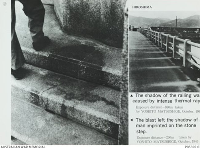Bức ảnh trên, "Bóng người trong đá", mô tả một người đàn ông ngồi trên một cầu thang bên ngoài Ngân hàng Sumitomo ở Hiroshima, Nhật Bản, cách quả bom nguyên tử khoảng 250 mét khi nó nổ. Do khoảng cách của người này rất gần với điểm phát nổ của nên về cơ bản anh ta bị bốc hơi.