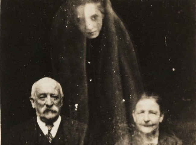 5. William Hope, một nhà tiên phong của nhiếp ảnh linh hồn, đã chụp bức ảnh này của một cặp vợ chồng và linh hồn của một người phụ nữ vào khoảng năm 1920.