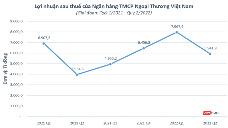 Tại ngày 30/6/2022, tổng tài sản của VCB đạt hơn 1,6 triệu tỉ đồng, tăng 13,2% so với đầu năm. Trong đó, dư nợ cho vay khách hàng của nhà băng này tăng tới 14,6% so với đầu năm, đạt 1,1 triệu tỉ đồng.