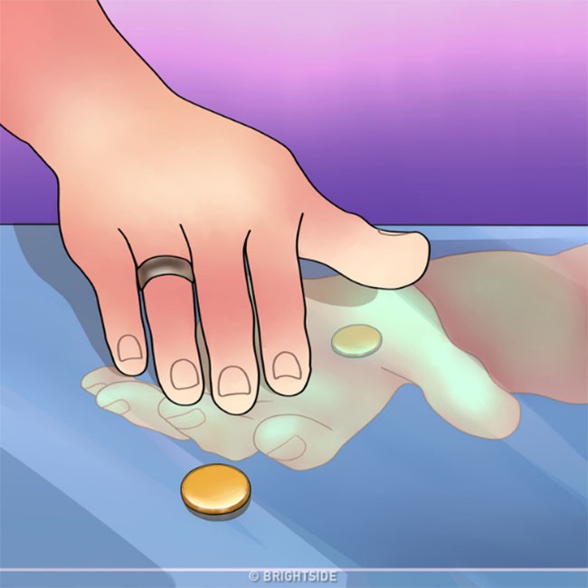 Cách thực hiện: Các nhà ảo thuật sử dụng 2 đồng tiền xu giống hệt nhau cho thủ thuật này. Một trong những đồng tiền được đặt trên kính trong khi một cái khác vẫn ẩn trong lòng bàn tay của pháp sư. Một phụ kiện thiết yếu của thủ thuật này là một chiếc nhẫn với một nam châm gắn liền với nó vẫn ẩn bên dưới ngón tay của pháp sư.