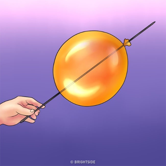 Một cây kim xuyên qua một quả bóng mà không làm vỡ bóng. Thực tế, mẹo này khá dễ thực hiện và bạn có thể thử ở nhà.
