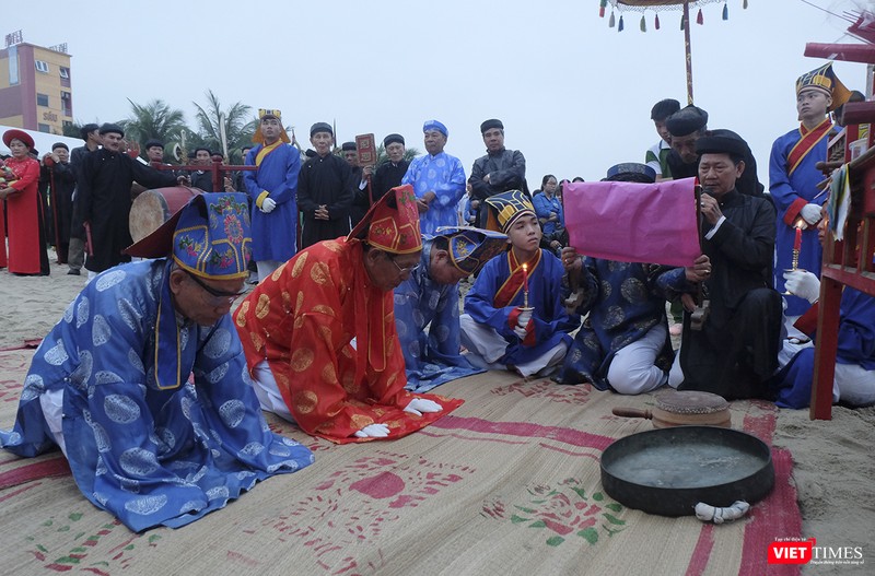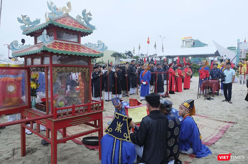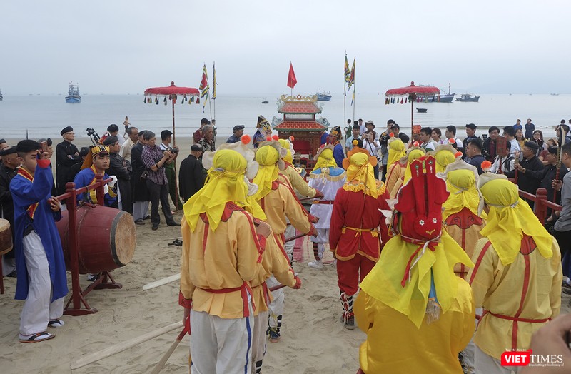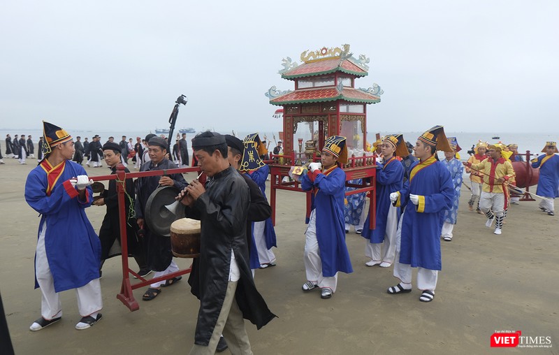 Sau khi thực hiện các nghi thức tế lễ, kiệu rước được khiêng dọc bờ biển theo nghi thưcs từ ngàn xưa