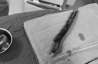Sau nhiều giờ căng thẳng, TS. Lê Hồng Nhân cùng nhóm phẫu thuật viên thần kinh đã lấy được mảnh gỗ dài thuôn nhọn ở đầu dài gần 12cm, dày 0,5cm cắm thành vào thành xương sọ của bệnh nhân.