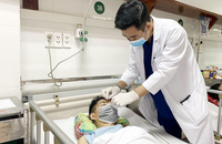 TS.BS. Lê Hồng Nhân - Phó Giám đốc Trung tâm Phẫu thuật Thần kinh, Trưởng khoa Phẫu thuật Thần kinh II, Bệnh viện Hữu nghị Việt Đức – cho biết: Chị T.T.H., 40 tuổi, dân tộc Sán Chí, sống ở Bắc Kạn vào viện trong tình trạng tỉnh, không liệt, không sốt, mắt bên phải sưng nề bầm tím, phòi kẹt tổ chức nội nhãn, nhãn cầu xẹp nghi ngờ nhãn cầu đã vỡ do cành cây xuyên qua hốc mắt vào sọ não.