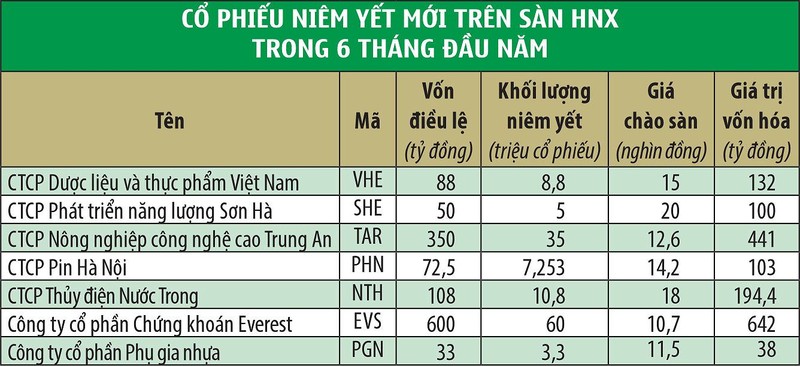 Lũy kế 6 tháng đầu năm, sàn HNX chào đón 8 doanh nghiệp mới và “chia tay” với 16 doanh nghiệp.