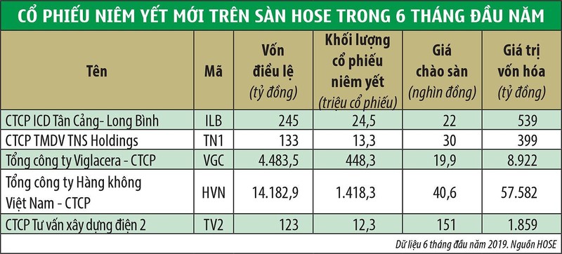 Cùng khoảng thời gian này, trên Sở Giao dịch chứng khoán TP.HCM (HOSE), có 5 doanh nghiệp chính thức được cấp quyết định niêm yết, với tổng khối lượng niêm yết mới đạt 1.916 triệu cổ phiếu, tương ứng giá trị niêm yết theo mệnh giá là 19.167 tỷ đồng.