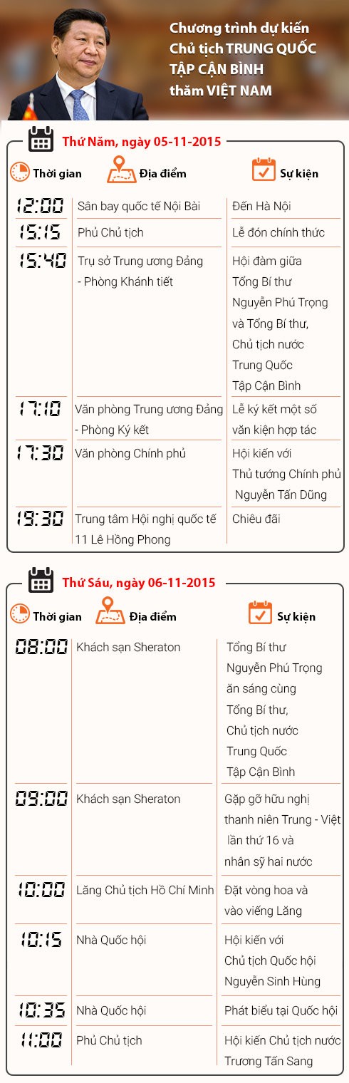 Lịch trình chuyến thăm Việt Nam của ông Tập Cận Bình