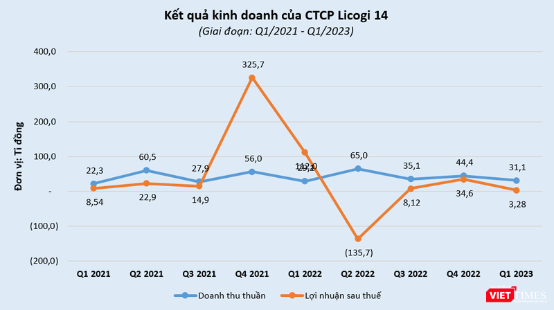 Trừ đi các chi phí khác, kết thúc quý 1/2023, lợi nhuận sau thuế của L14 đạt 3,2 tỉ đồng, giảm 63,8% so với thực hiện quý 1/2022.