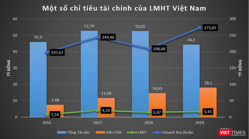 Tính đến cuối năm ngoái, tổng tài sản của LMHT Việt Nam chỉ đạt 44,3 tỷ đồng, giảm 15,8% so với thời điểm đầu năm; trong khi đó vốn chủ sở hữu tăng nhẹ từ 14,65 tỷ đồng lên đạt 18,1 tỷ đồng.