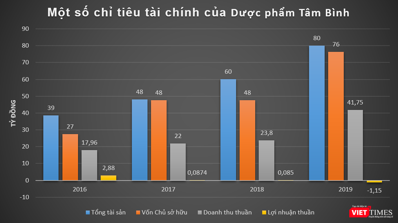 Tính đến cuối năm 2019, tổng tài sản của Dược phẩm Tâm Bình đạt 80 tỉ đồng, vốn chủ sở hữu ở mức 76 tỉ đồng, tăng trưởng lần lượt 33% và 58% so với thời điểm đầu năm.