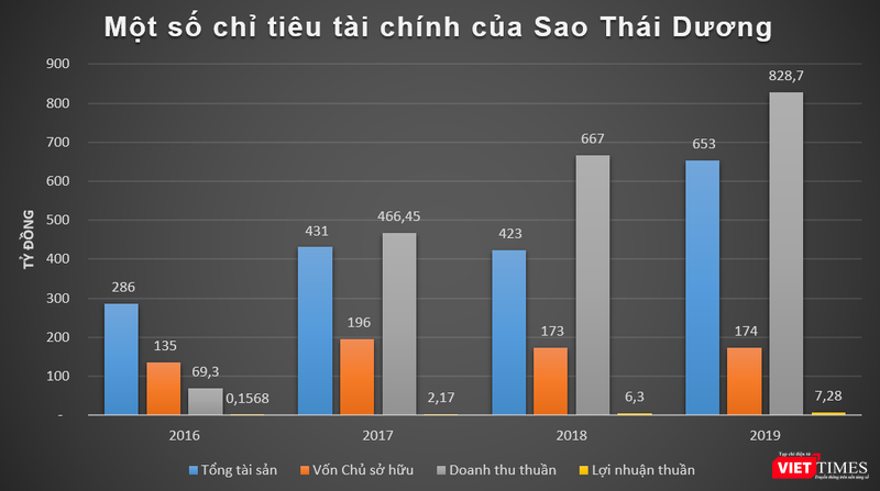 Dữ liệu của VietTimes cho thấy, trong 4 năm trở lại đây, doanh thu và lợi nhuận của Sao Thái Dương vẫn tăng trưởng mạnh. Như năm 2016 và 2017, doanh thu thuần của Sao Thái Dương lần lượt đạt 69,3 tỉ đồng và 466,45 tỉ đồng; lãi thuần lần lượt ở mức 156,8 triệu đồng và 2,17 tỉ đồng.