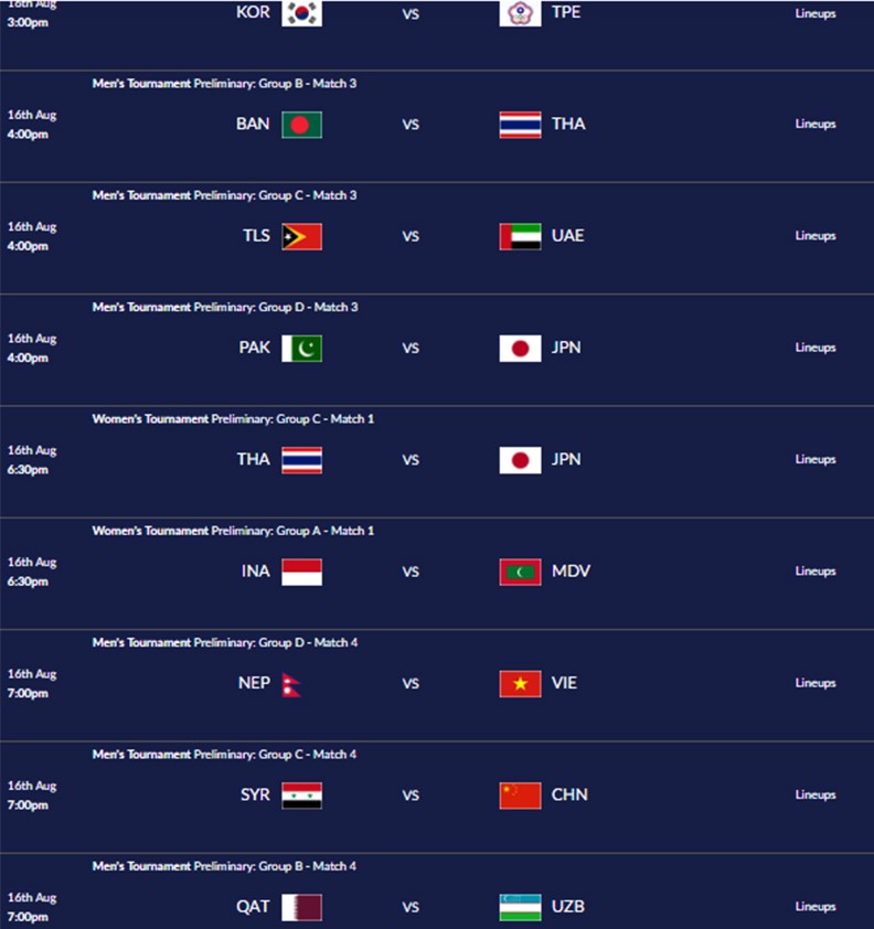 Lịch thi đấu các trận bóng Asian Games ngày 16/8