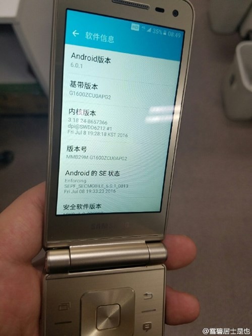 Cụ thể, loạt ảnh mới nhất cho thấy rõ ràng chi tiết bản lề xoay kết nối 2 mảnh “vỏ sò” trông khá đẹp mắt. Ảnh chụp 2 mặt sản phẩm cũng cho thấy Samsung Galaxy Folder 2 sở hữu cả camera chính kèm đèn flash LED và camera phục vụ nhu cầu selfie. Chiếc smartphone nắp gập Galaxy Folder 2 trong loạt ảnh này cũng được cài đặt sẵn Android 6.0.1.