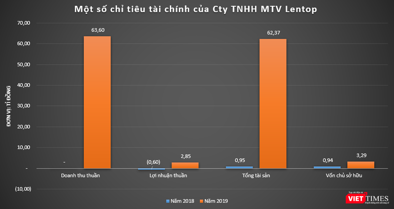 Cụ thể, năm 2018, sau vài tháng hoạt động, Lentop không ghi nhận doanh thu, báo ỗ thuần 0,6 tỉ đồng. Bước sang năm 2019, doanh nghiệp này ghi nhận doanh thu thuần đạt 63,6 tỉ đồng, báo lãi 2,85 tỉ đồng.
