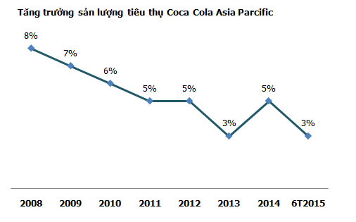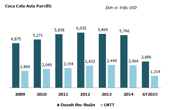 Theo báo cáo tài chính của Tập đoàn Coca Cola, sau khi tăng trưởng liên tục đến năm 2012, doanh thu của Coca Cola tại khu vực châu Á- Thái Bình Dương đã bắt đầu đi xuống và lợi nhuận trước thuế đang chững lại ở mức trên 2.400 triệu USD/năm.