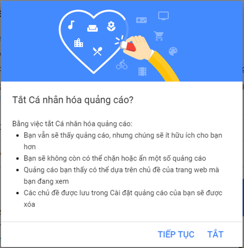 Lưu ý, các thao tác thiết lập này không thể chặn hấu hết quảng cáo của Google, tuy nhiên sẽ giúp hạn chế tối đa những nội dung quảng cáo không mong muốn liên tục xuất hiện trên giao diện website mà mình thường xuyên truy cập.