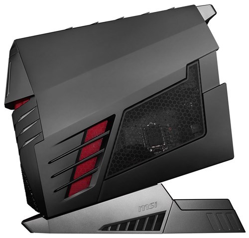 MSI Aegis Ti cũng mang phong cách thiết kế như một bệ phóng, toàn bộ phần thùng máy được đặt nghiêng trên một chân đế khá lớn cũng góc cạnh không kém. Tuy nhiên, so với mẫu MSI Aegis từng giới thiệu, MSI Aegis Ti trông gai góc hơn do thiết kế phần mặt nạ mặt trước máy đã có những thay đổi diện mạo đáng kể.