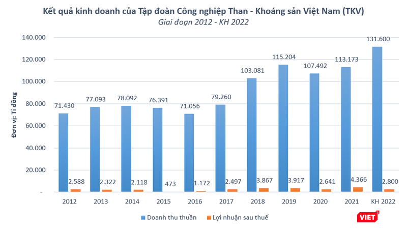 Trừ đi các loại chi phí khác, TKV báo lãi sau thuế cả năm 2021 đạt 4.366,4 tỉ đồng, tăng 65,3% so với thực hiện năm 2020. Đây cũng là mức lợi nhuận cao nhất của TKV kể từ năm 2012.