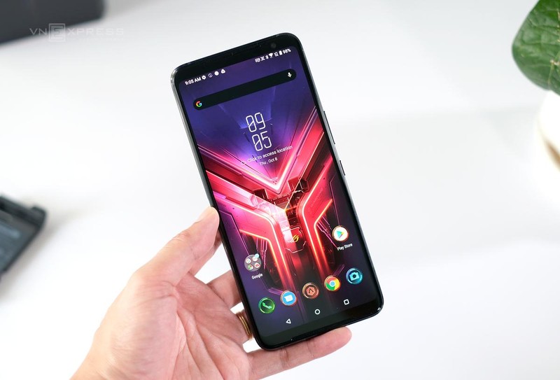 Mẫu điện thoại chuyên game của Asus đứng "đỉnh" bảng xếp hạng smartphone Android mạnh nhất của AnTuTu trong ba tháng liên tiếp trước khi "nhường" vị trí cho Mate 40 Pro. Sản phẩm được trang bị cấu hình mạnh nhất hiện nay, với chip Snapdragon 865 Plus của Qualcomm, RAM 16 GB, bộ nhớ trong 512 GB, màn hình 6,59 inch tần số quét 144 Hz. Ngoài ra, máy cũng có ngoại hình với các đường cắt vát phía sau lạ mắt, "hầm hố" cho game thủ. Ảnh: Tuấn Hưng.