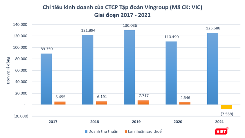 Trên bảng báo cáo kết quả kinh doanh, chỉ tiêu doanh thu thuần năm 2021 của Vingroup tăng thêm 381,6 tỉ đồng sau kiểm toán, đạt 125.687,8 tỉ đồng, tăng 13,7% so với năm 2020. Lãi từ hoạt động tài chính cũng tăng thêm 186,1 tỉ đồng sau kiểm toán. Chi phí bán hàng và chi phí quản lý doanh nghiệp lần lượt giảm 141,6 tỉ đồng và 142,7 tỉ đồng.