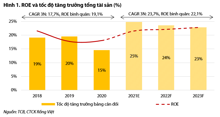 “Chênh lệch kỳ tài định giá dương ở rổ kỳ hạn ngắn và tỉ trọng lớn nợ phải trả không nhạy cảm với lãi suất giúp Techcombank hưởng lợi từ việc lãi suất tăng trở lại. Kết hợp với tăng trưởng bảng cân đối và áp lực giảm ở chi phí tín dụng biên, ROE dự kiến duy trì ở mức 22-23% trong vài năm tới”, báo cáo của VDSC viết.