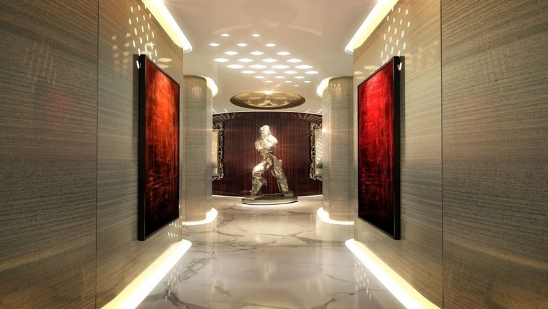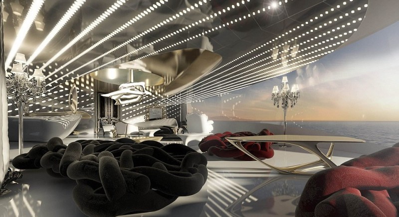 Chủ sở hữu du thuyền sẽ cảm thấy mình đang ở trong biệt thự cá nhân. Trong tầm tay là câu lạc bộ hai tầng với hai rạp chiếu phim, phòng tập thể dục, garar, xuồng bơm hơi, mô tô nước và thậm chí là máy bay trực thăng.