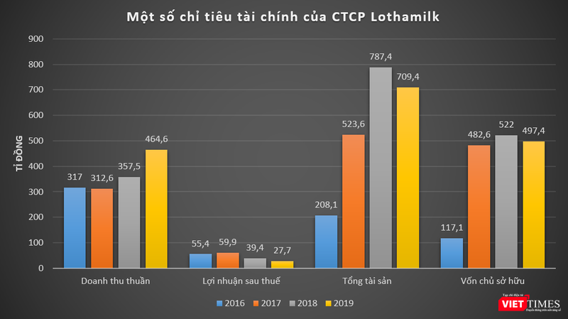 Dữ liệu của VietTimes cho thấy, trong giai đoạn 2016 - 2019, tỷ suất lợi nhuận trên doanh thu của Lothamilk có xu hướng giảm dần. Gần nhất là năm 2019, Lothamilk ghi nhận doanh thu thuần đạt 464,6 tỉ đồng, tăng gần 30% so với năm trước; tuy nhiên lãi sau thuế lại giảm 29,7%, từ 39,4 tỉ đồng năm 2018 xuống 27,7 tỉ đồng năm 2019.
