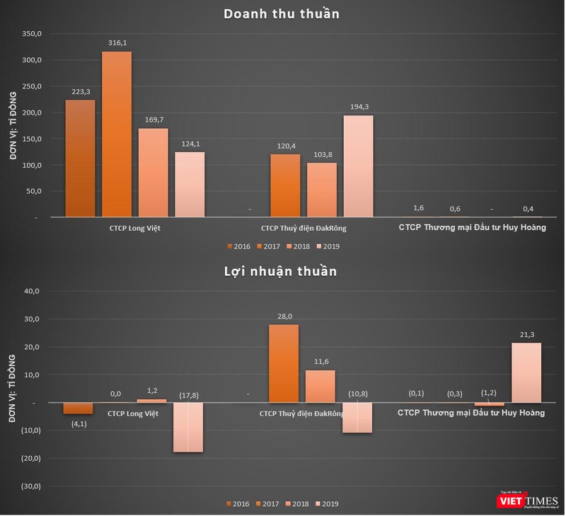 Điều đáng nói, dữ liệu của VietTimes cho thấy, những thành viên của Lovico Group như Long Việt, Huy Hoàng và ĐakRông đều có quy mô và kết quả kinh doanh trên báo cáo riêng lẻ khá khiêm tốn, thậm chí thua lỗ trong năm 2019.